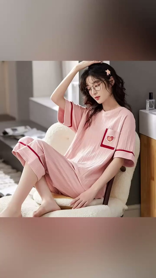 全清8.2分货+1韩版新款睡衣套装女短袖七分裤可外穿家居服,小整,独立包装...