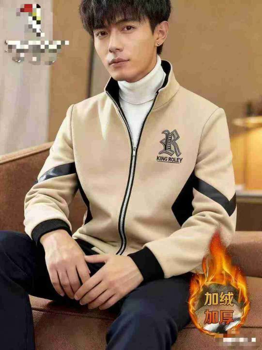 全清8.9男士外套韩版秋冬季加绒加厚保暖立领夹克男士...