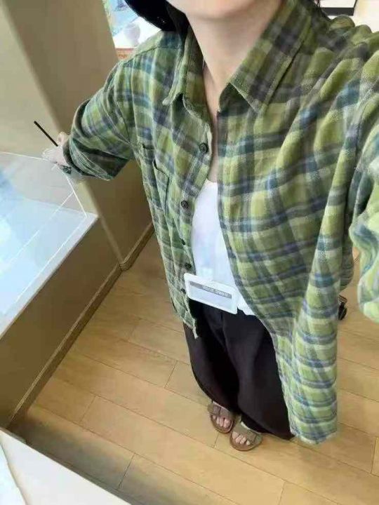 早春格子衬衫1434件9.5,宽松慵懒风,弧形下摆,复古...