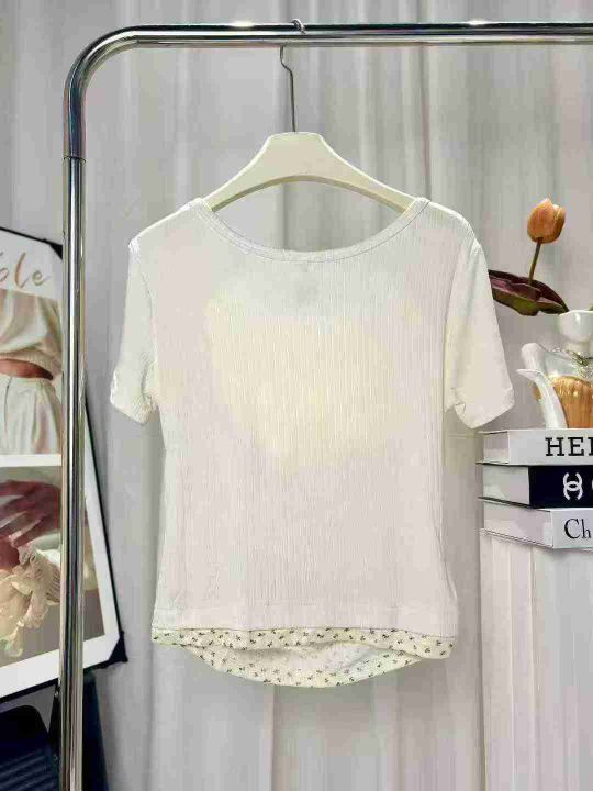 夏季新款蕾丝花边拼接假两件修身显瘦纯欲穿搭短款T恤上衣, 面料亲肤舒适高弹力 独立包装 码数1-4码 数量215件 全清5.8