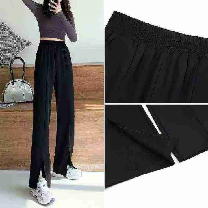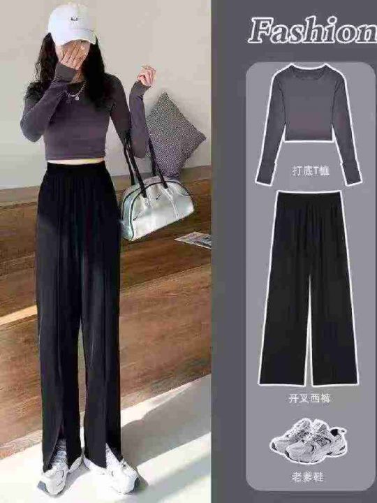 春秋高腰垂感显瘦阔腿松紧腰前开叉西装裤 独立包装 码...