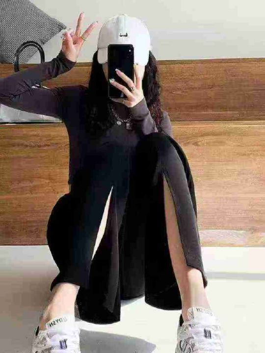 春秋高腰垂感显瘦阔腿松紧腰前开叉西装裤 独立包装 码数S M(S码可以穿100斤以上)数量80 全清6.5