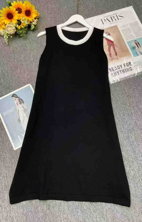 夏季新款净版简约宽松冰丝针织毛衣背心连衣裙,独立包...