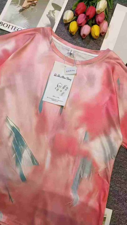 气质独特别致粉色印花显瘦五分袖T恤,[爱心]95件左右,款号#7027,码数S-2XL,穿80-140斤,[666]工厂原包装瑕疵,分货加一