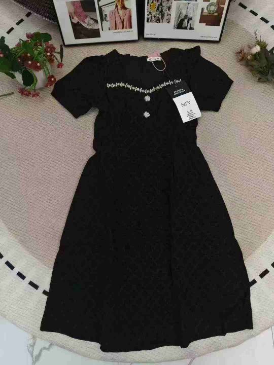 法式菱格镶钻方领高腰修身高级时尚连衣裙 数量112件 码数M--4XL 整款两个色 独立包装带吊牌 货品整洁质佳