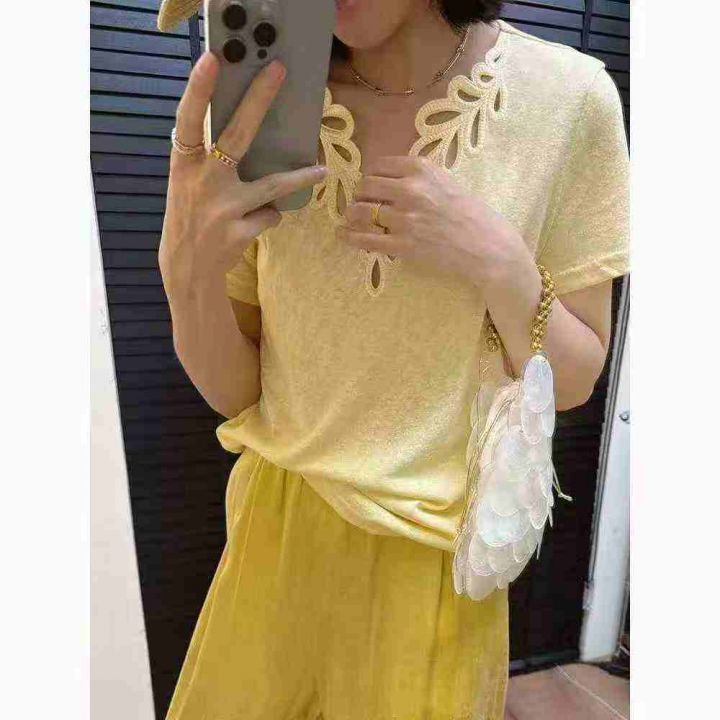 法式小众镂空时尚V领减龄宽松上衣,[爱心]70件左右,款号#7191,码数M-XL,穿80-140斤,工厂原包原吊无瑕疵