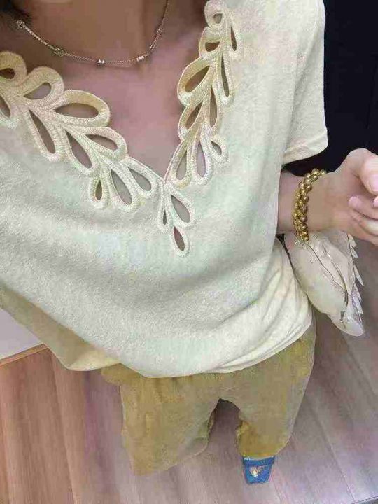 上新全清:3.9一件法式小众镂空时尚V领减龄宽松上衣,...
