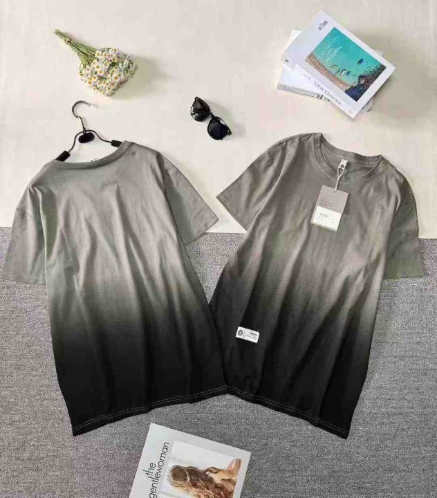 夏季宽松渐变色上衣服休闲宽松圆领短袖T恤男,领口包边到肩颈,品质好,拉链式独立包装