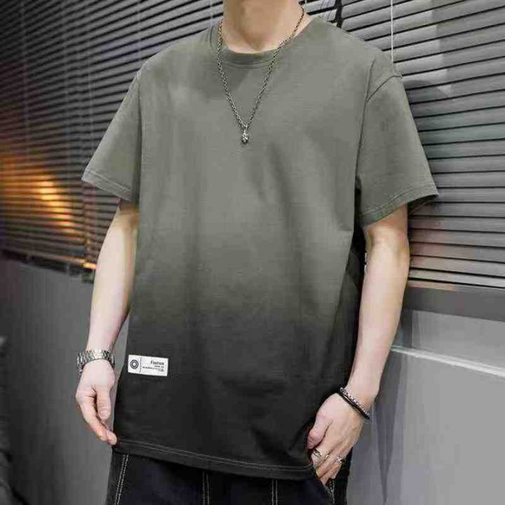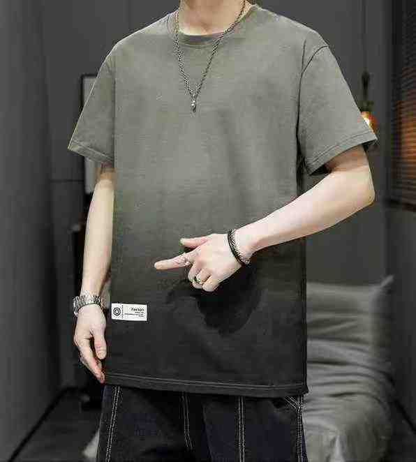 夏季宽松渐变色上衣服休闲宽松圆领短袖T恤男,领口包...