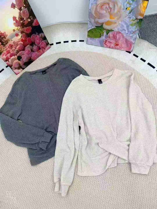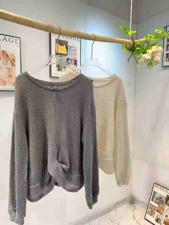 4.9清238左右高腰扭结套头针织衫女士秋季新款百搭纯色宽松上衣外!大货杏色为主!码数:S-1XL!独立包装货品干净!