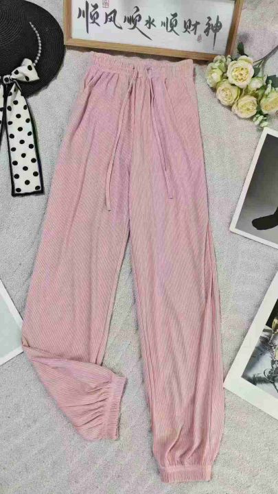 女冰丝束脚休闲运动裤薄款垂感显瘦灯笼裤慵懒山本裤子
