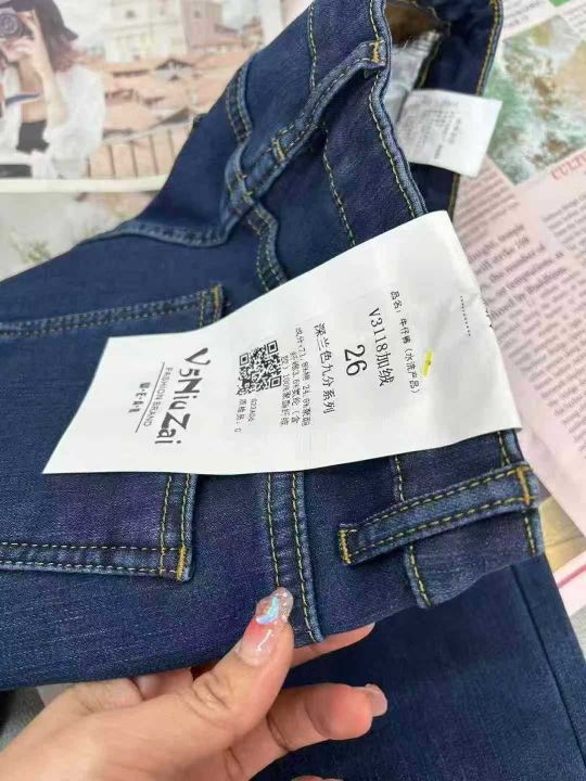 深蓝色女士九分小个子弹力修身加绒烟管牛仔裤,单款单色,独立包装,数量90条,25-27码,福利价9.9秒杀
