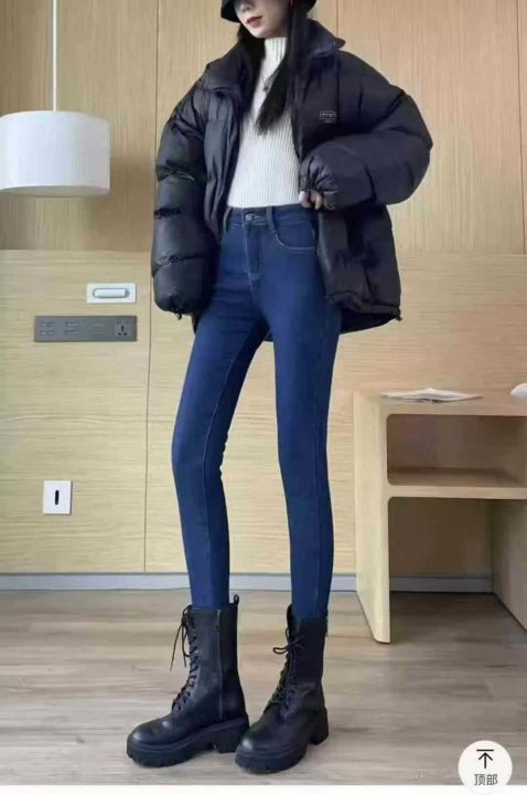 高腰加绒女士弹力修身牛仔裤,单款单色,独立包装,数...