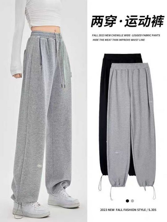 男女运动卫裤新款春秋冬季加绒休闲直筒阔腿裤束脚卫裤...