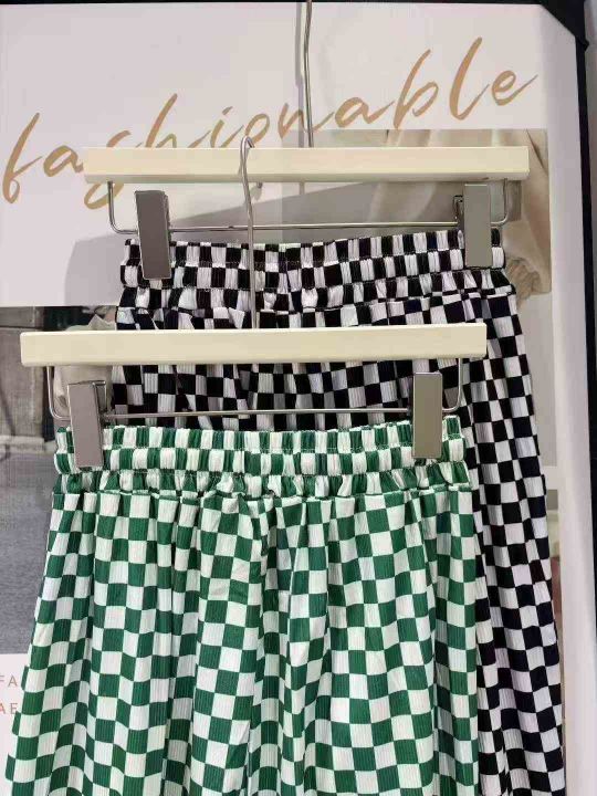 冰丝棋盘格裤子女夏季薄款高腰显瘦垂感休闲阔腿裤 有弹力 独立包装 码数1-5码 数量120件 全清6.8