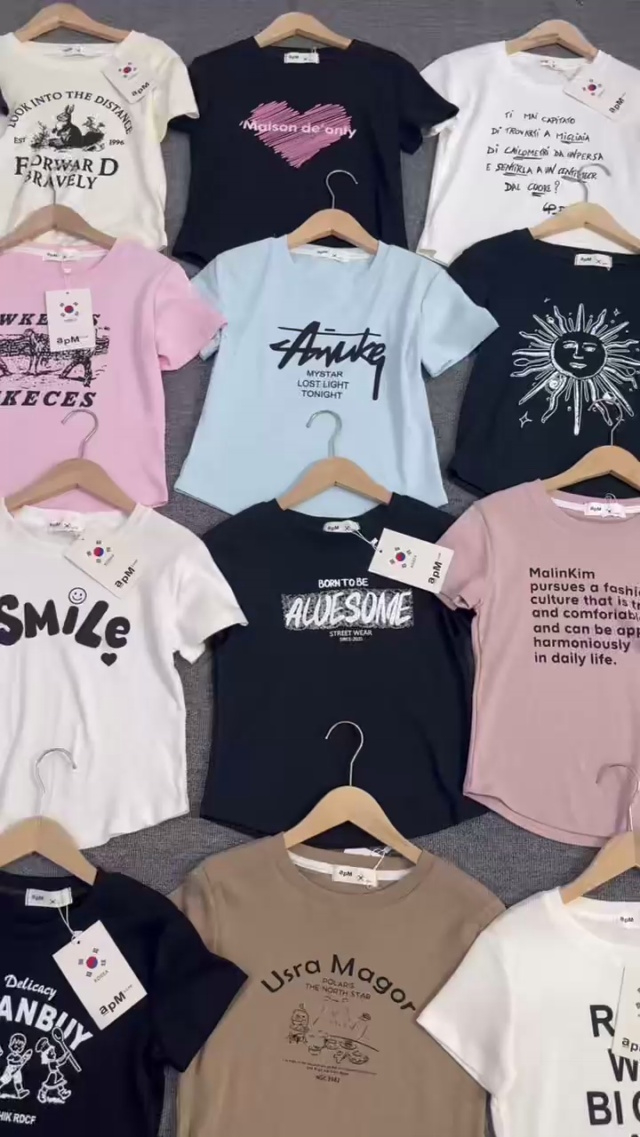 8000件新款[勾引]韩标印花辣妹小T,个位数清仓出货,螺纹棉弹力够大,均码...