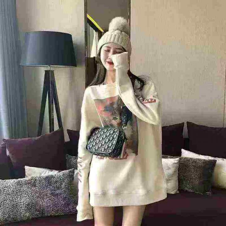 100件韩系秋冬新款宽松圆领遮屁股中长款卫衣!质量超...