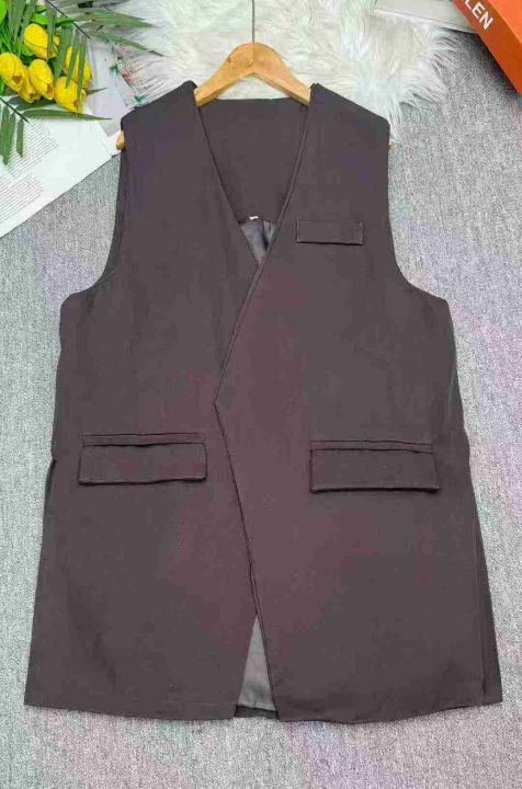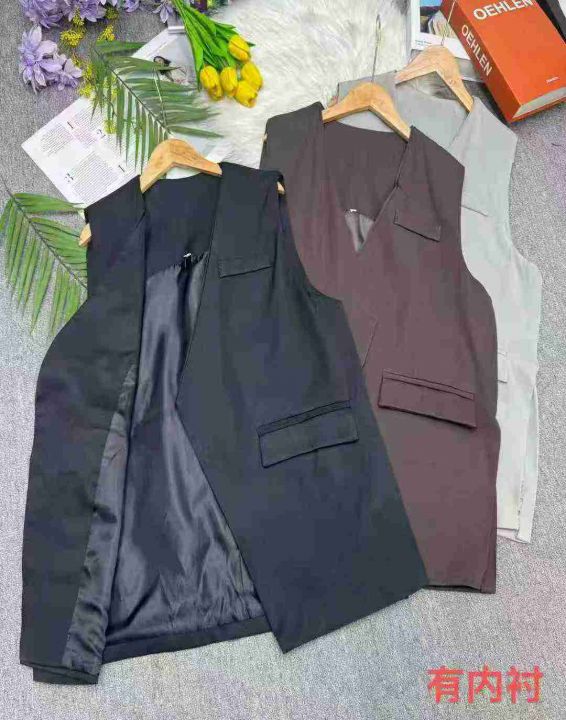 宽松气质无领无扣美式慵懒风西装马甲,独立包装,整款三色,黑色咖啡色多,西装面料有内衬,码数2/3码,数量236件,货号123#2