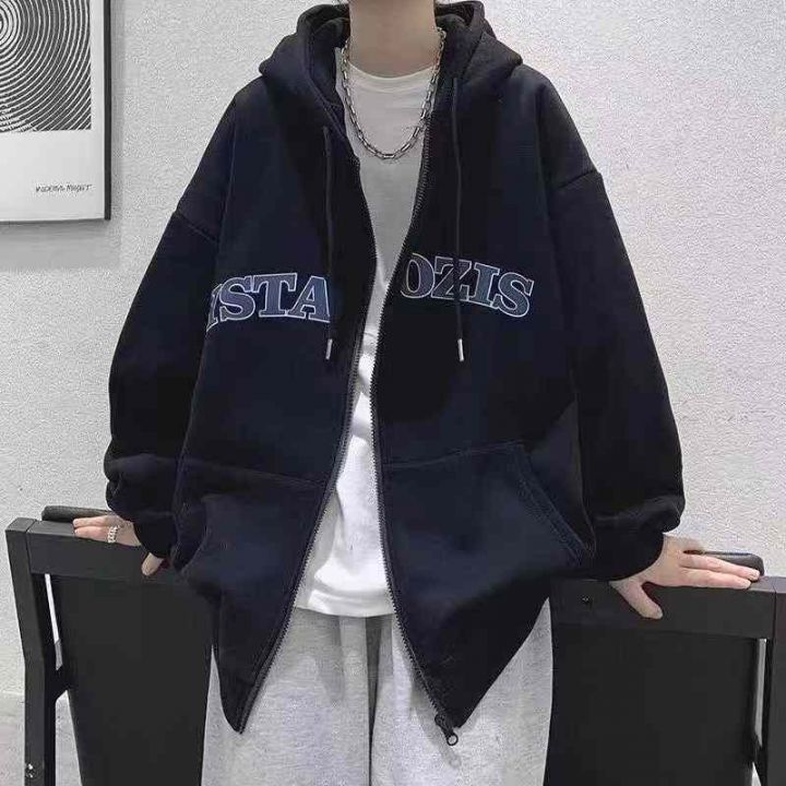 931 春秋复古潮牌男女卫衣开衫情侣装连帽宽松青少年字母加厚外套!