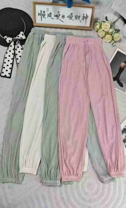女冰丝束脚休闲运动裤薄款垂感显瘦灯笼裤慵懒山本裤子