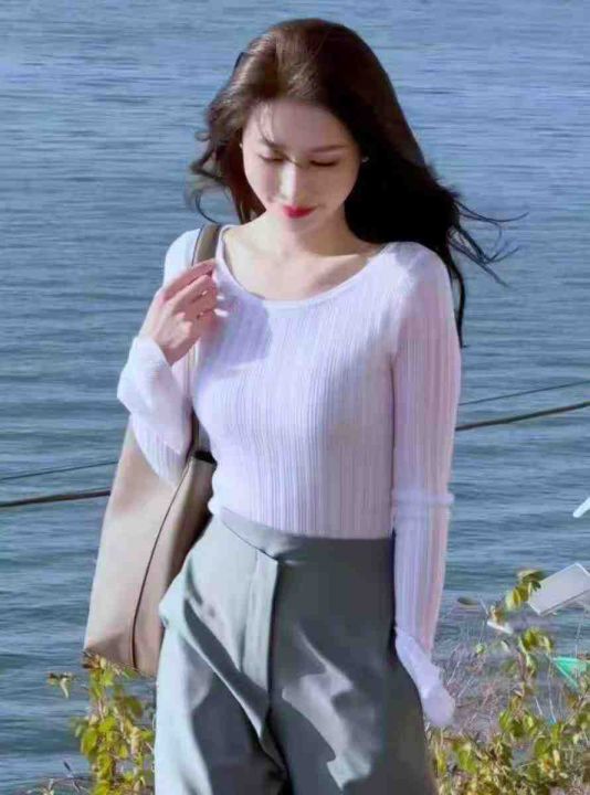 工厂回收582件韩系靓妹白色打底衫不规则设计感长袖T恤,码数S-2XL。面料有弹力,全部独立包装。分货+0.5。 货号:1323