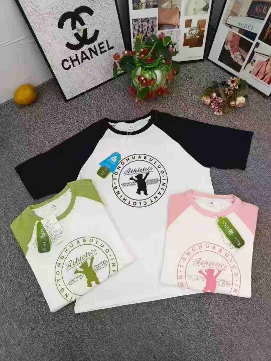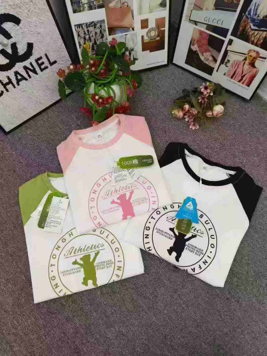 品牌女童插肩中大童纯棉洋气T恤,数量2000件左右,码数110--160,整款三个色,统一品牌,独立包装带吊牌,大货干净漂亮