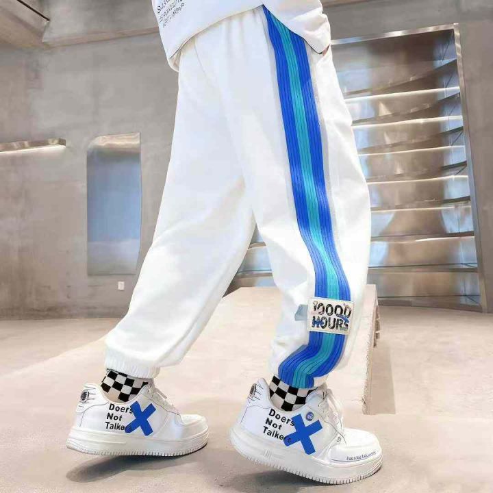 男童裤子春秋潮童炸街童裤中大童拼色大条纹运动裤儿童休闲裤卫裤,独立包装带吊牌,120-160码,40件,8.8元清