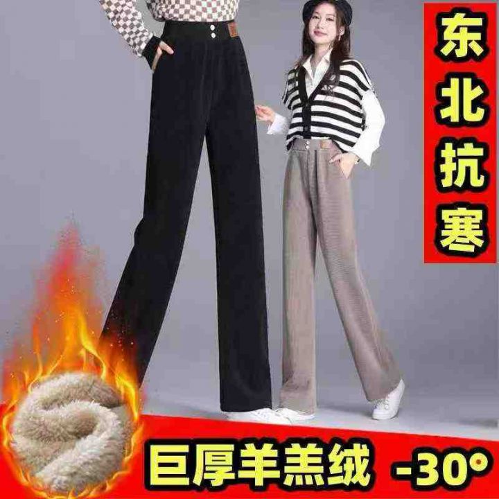 灯芯绒加绒阔腿裤女冬季新款显瘦宽松垂感休闲直筒裤,...