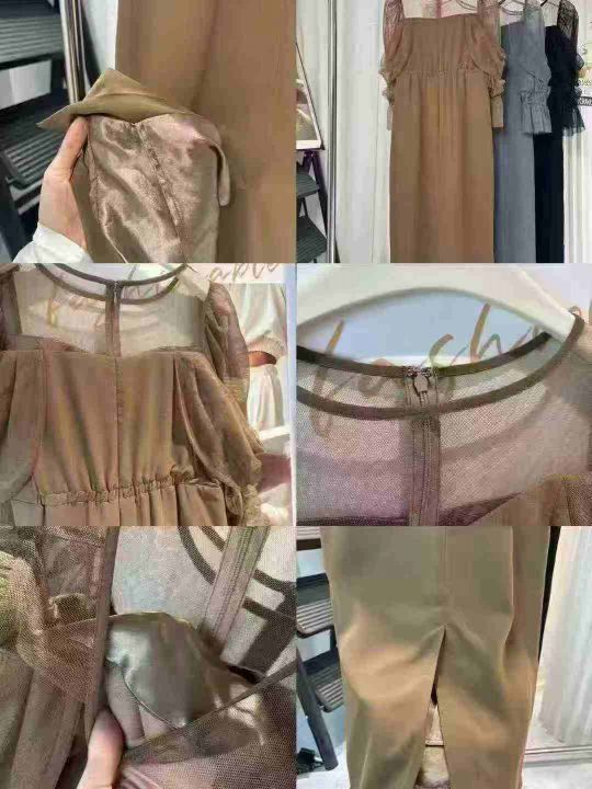 150条左右日单圆领拼接网纱微透喇叭袖收腰显瘦纯色开衩鱼尾连衣裙,质量超好!琉璃网纱微弹力不易勾丝,有内衬,尺码S-L,独立包装!全清17.8