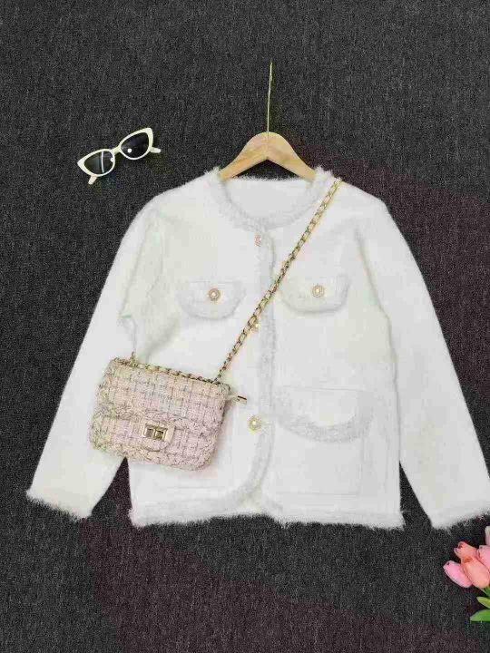 全清24.8元,2000件左右,春秋季新款宽松洋气小香风针织毛衣开衫仿水貂外套,小整款,独立包装,均码80-130斤可穿,分货➕1