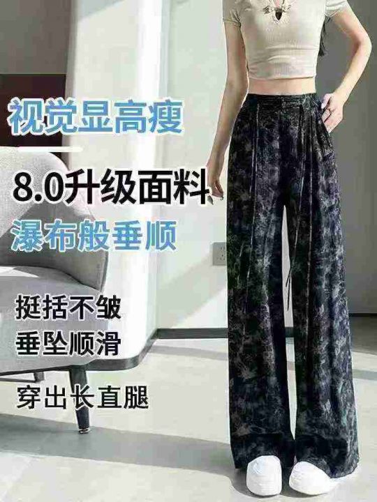 ☕️夏季新中式国风墨染冰丝阔腿裤女夏凉凉裤垂感直筒...