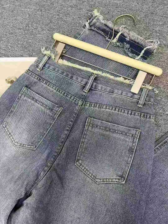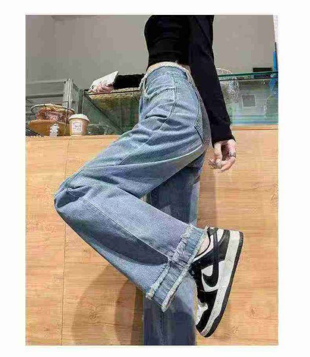 ☕️毛边直筒阔腿牛仔裤女秋冬季新款高腰毛边宽松阔腿...