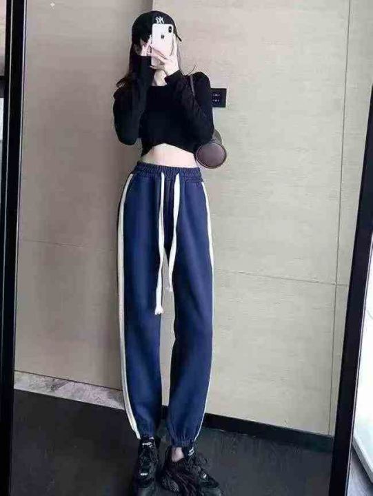 春秋新款高腰显瘦百搭宽松哈伦束脚运动裤休闲卫裤 独...