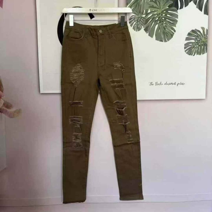 6.8元捡漏[玫瑰][玫瑰] 男女同款显瘦铅笔破洞哈伦牛...