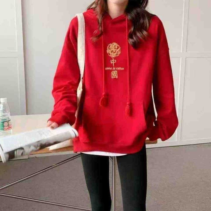 红色双层连帽卫衣宽松秋冬国潮外套中国风卫衣女学院风春秋款,数量220件,码数s-2xl,独立包装,全清5.5元。 货号:24862
