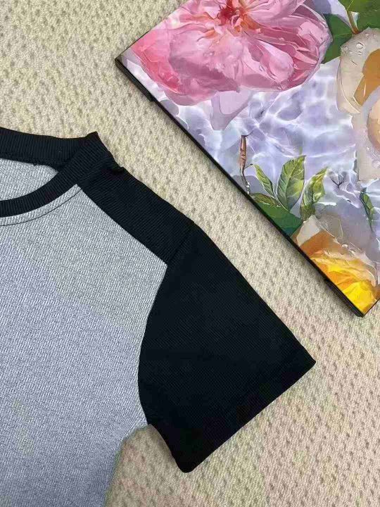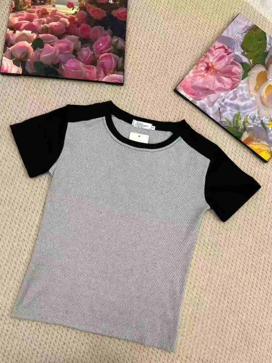 1230件夏季超好看辣妹撞色拼接字母长袖短袖t恤女春秋修身显瘦休闲百搭短款上衣!弹力