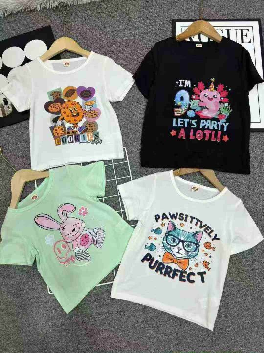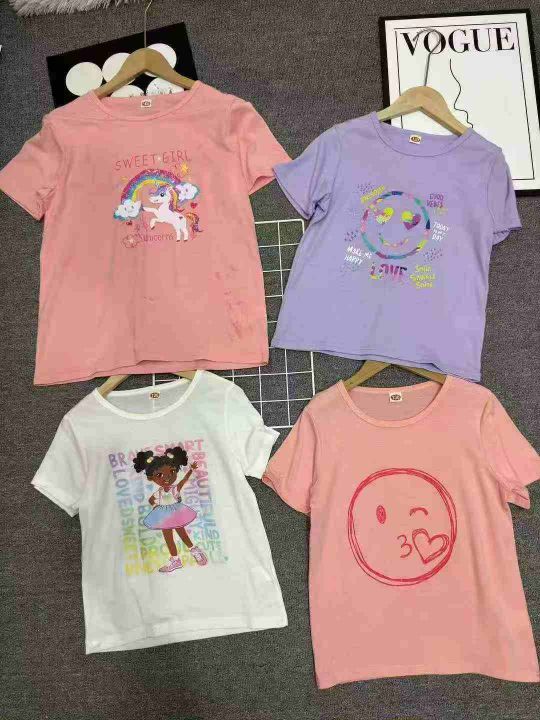 全清3.3元,60000件男女童短袖T恤,夏装新款卡通彩色卡通图案童装短袖T恤,花型大同小异一系列独立包装,码数90~160,分货➕0.5