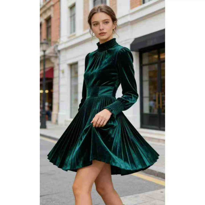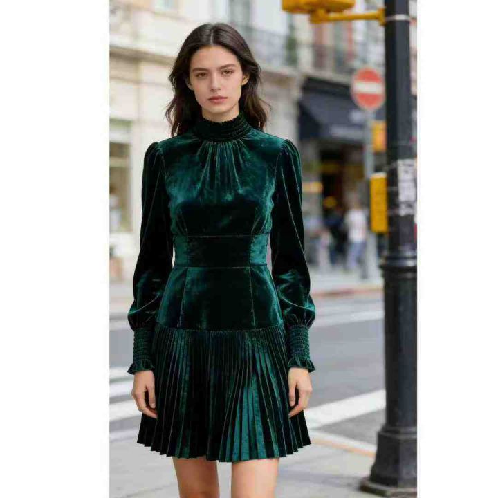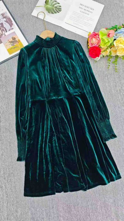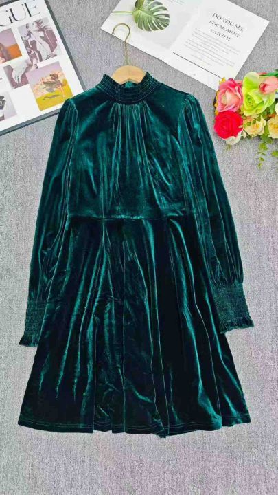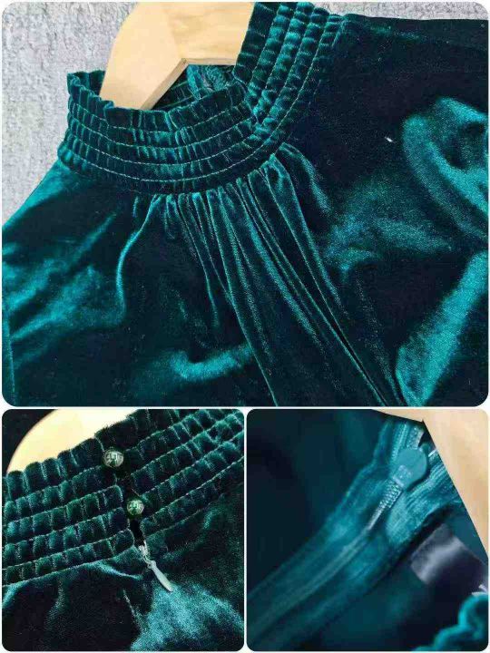 工厂回收291件法式高级缎面墨绿色金丝绒连衣裙,码数S-XL。拍照都拍不出来的高级感,背后有拉链,模特图仅供参考,有独立包装。分货➕1