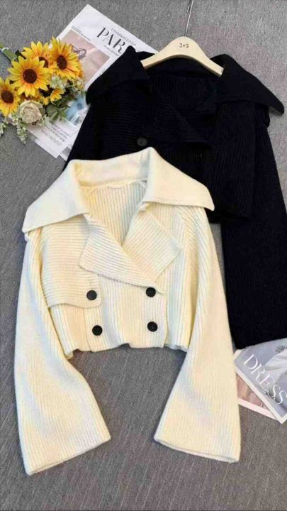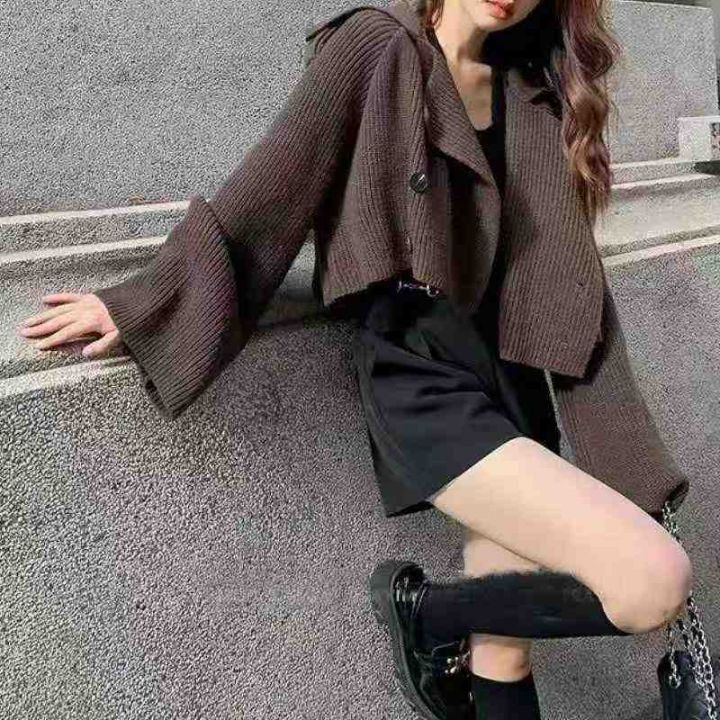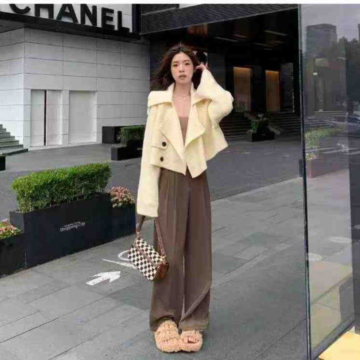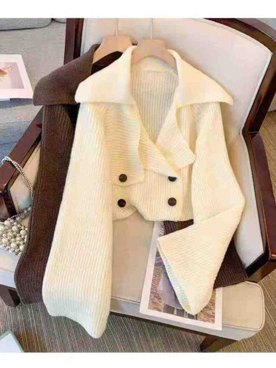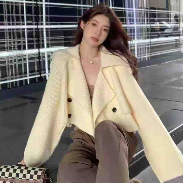 秋冬新款慵懒风短款加厚小香风设计款包芯纱毛衣开衫,...