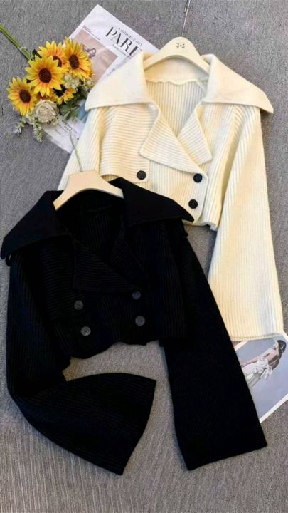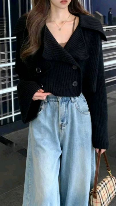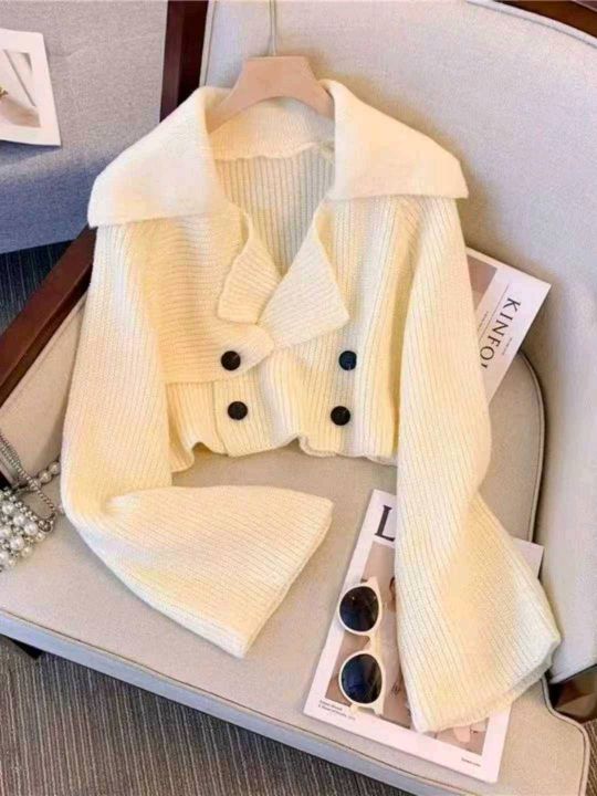 秋冬新款慵懒风短款加厚小香风设计款包芯纱毛衣开衫,...