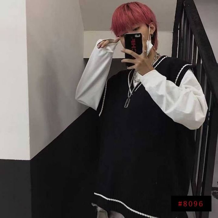 日系复古毛衣男款秋冬撞色打底衫线衣加厚潮牌宽松针织衫,独立包装,货品干...