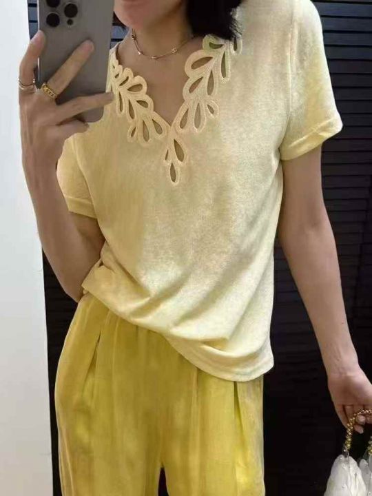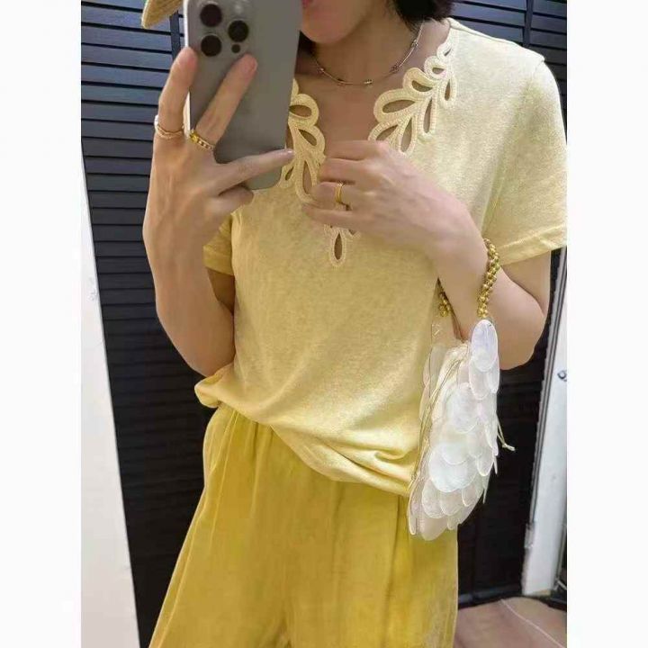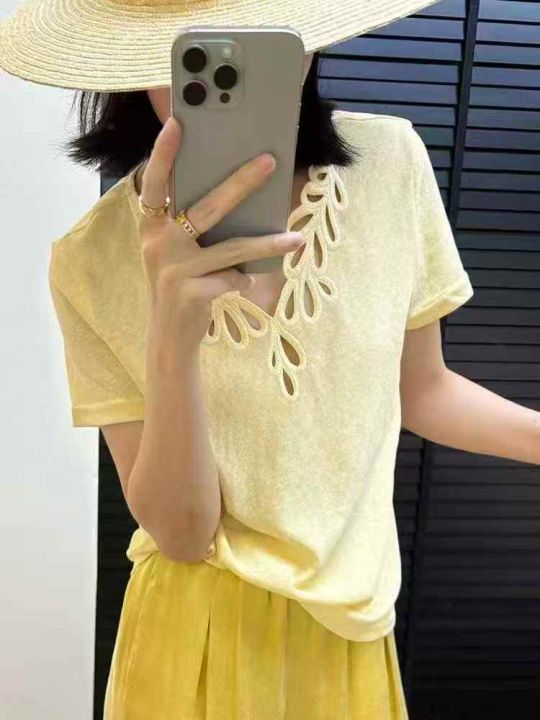 上新全清:3.9一件法式小众镂空时尚V领减龄宽松上衣,...