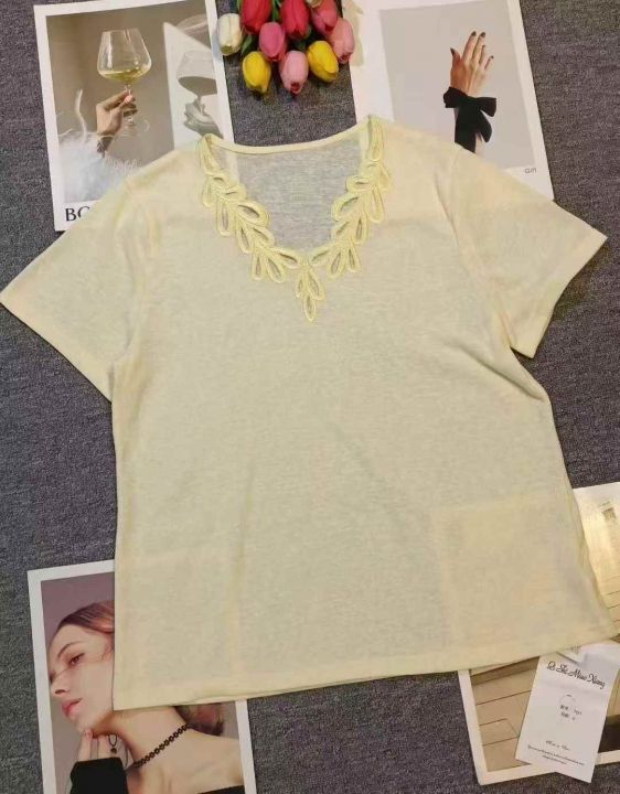 法式小众镂空时尚V领减龄宽松上衣,[爱心]70件左右,款号#7191,码数M-XL,穿80-140斤,工厂原包原吊无瑕疵