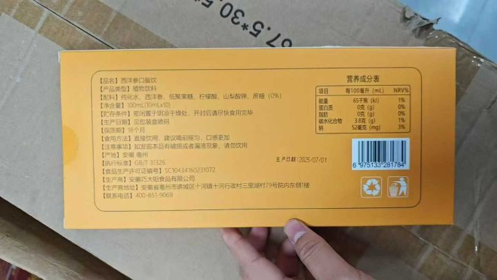 西洋参口服饮10ml*10支,800盒25年7月日期,保18个月...