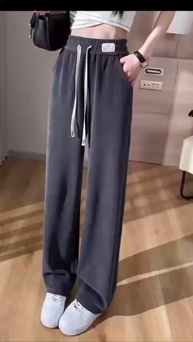 春秋男女款宽松显瘦直筒高腰垂感阔腿裤加厚束脚休闲卫裤 独立包装 数量60件...