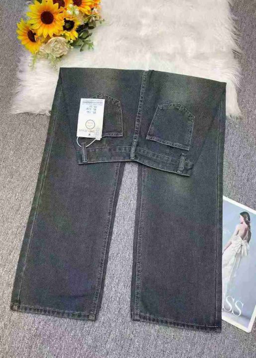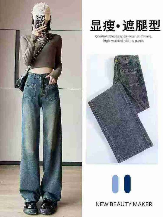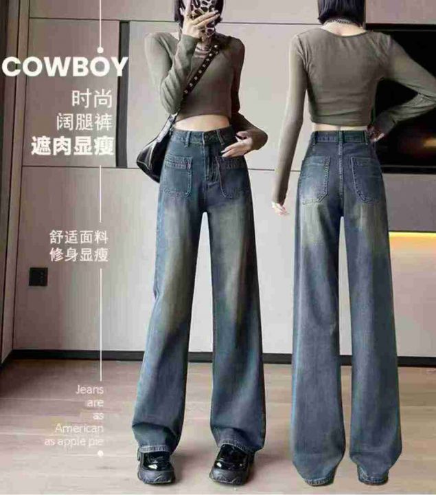 秋冬新款洗水棉网红复古蓝牛仔直筒阔腿裤,独立包装带...