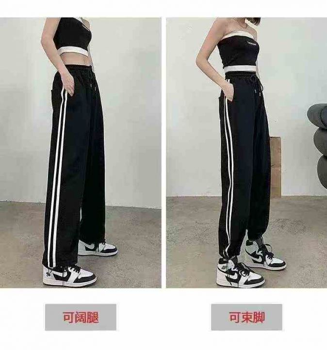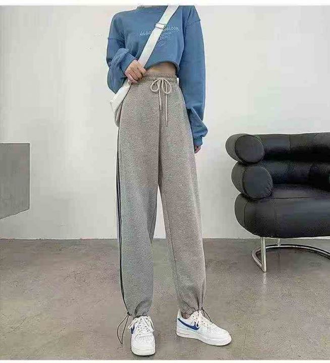 春秋男女款宽松显瘦直筒高腰垂感阔腿裤加厚束脚休闲卫...