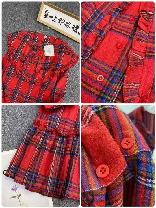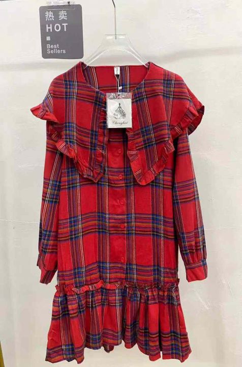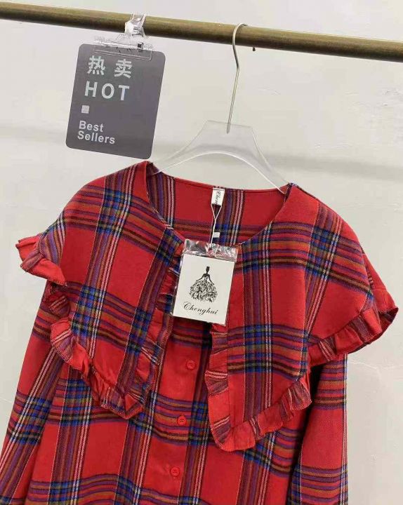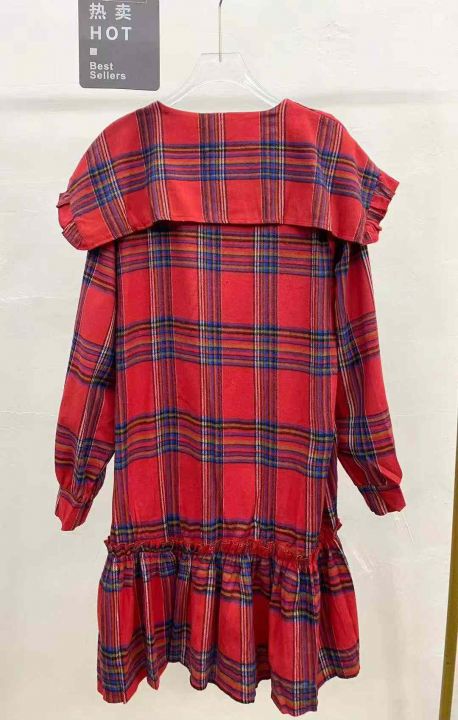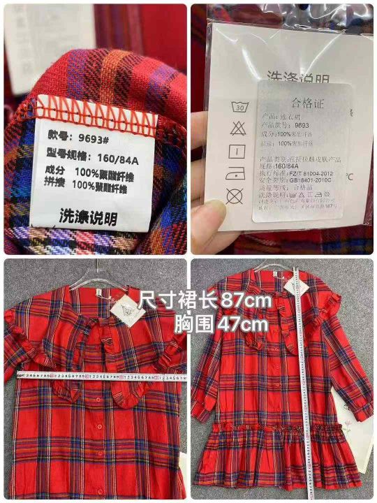 复古格子连衣裙121件9.9,翻领荷叶边,褶皱拼接,码标...