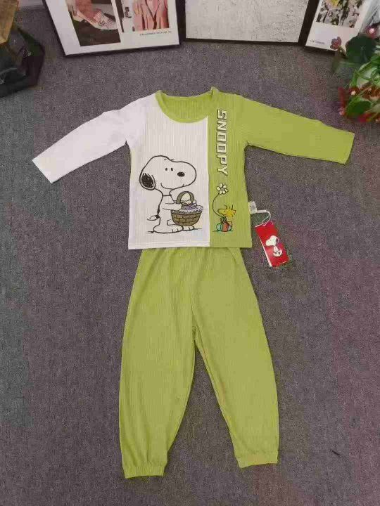 品牌童装长袖家居服套装,数量700套左右,尺码90--150,大码多,整款单色两个品牌(史努比、baby),可分品牌出,独立包装带吊牌,货品整洁质佳
