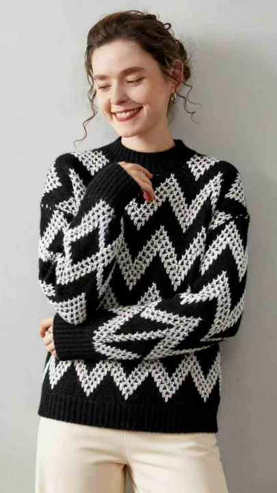 秋冬新款重磅加厚花纱山羊绒圆领慵懒风套头毛衣,独立...